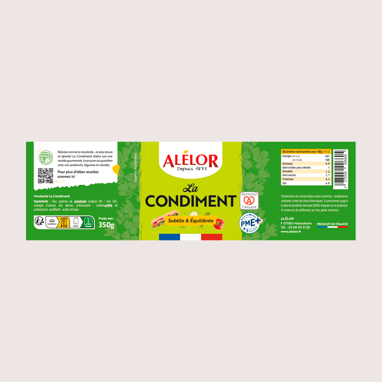 Fabriquée en Alsace avec des graines de moutarde cultivées localement et broyées à la meule de pierre, la Condiment est une recette traditionnelle revisitée.