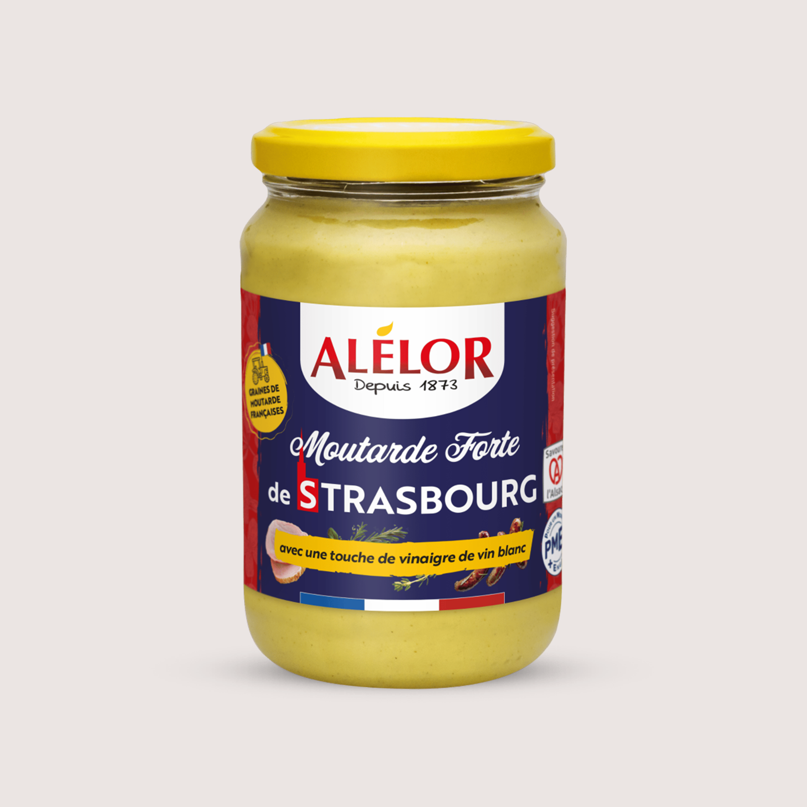 La moutarde forte de Strasbourg est une moutarde alsacienne au caractère unique. Elle se caractérise par un mélange gourmand et unique d'épices, qui offre une délicieuse longueur en bouche, ainsi qu'une touche de vinaigre de vin blanc dont le dosage amène de la force à la moutarde.