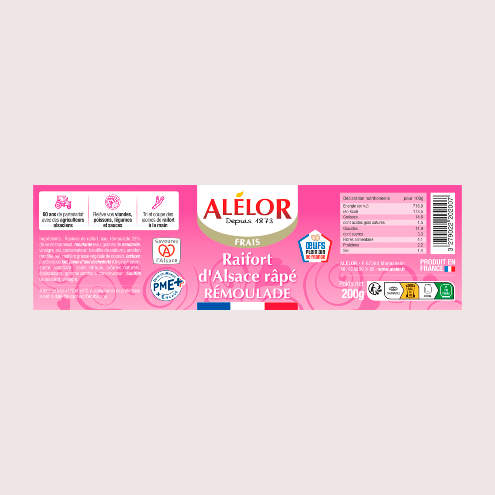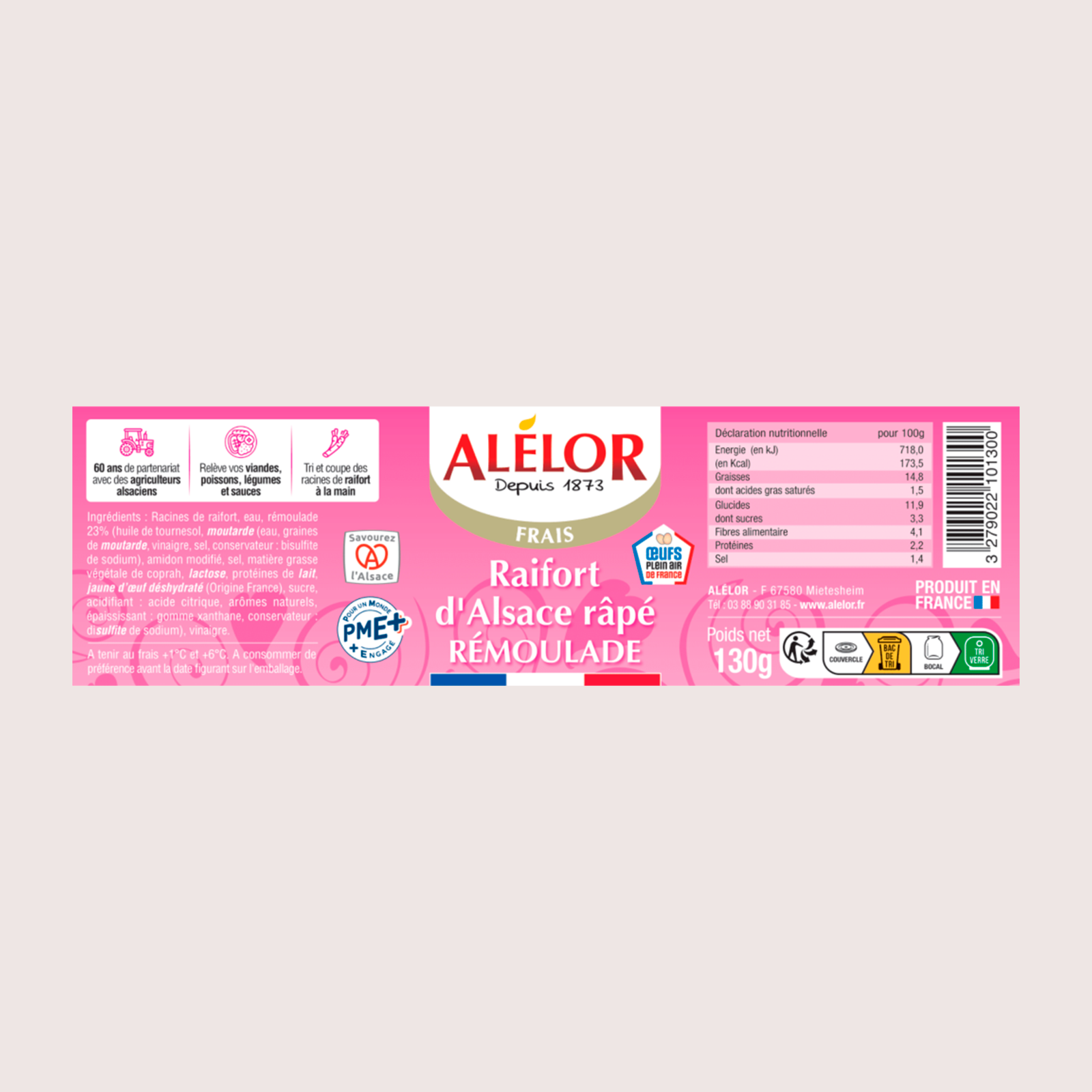 Le raifort d’Alsace râpé en rémoulade, c’est l’association des racines de raifort à la préparation « Rémoulade » qui offre une typicité unique. C’est un condiment traditionnel alsacien apprécié de tous, qui relève les viandes, poissons, salades et charcuteries.
