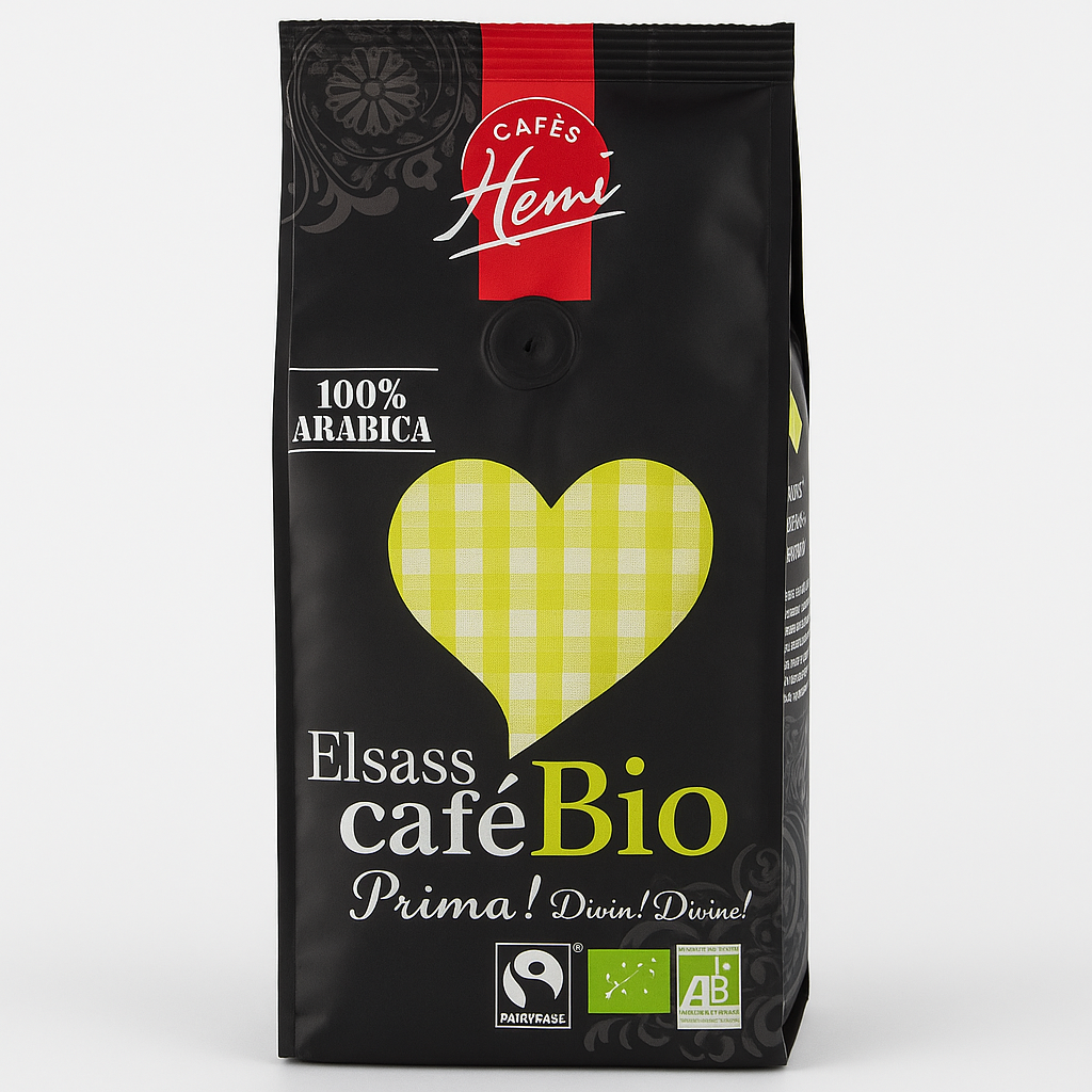 Le café Elsass Café BIO Cafés Henri est un bio elsass café d'origine mixte (blend). Découvrez toute l’intensité des arômes de ce café longue conservation que nos caféologues ont sélectionné pour son goût intense. Laissez-vous séduire à votre tour, par les saveurs de ce café robe de moine, torréfié à cœur par Cafés Henri.