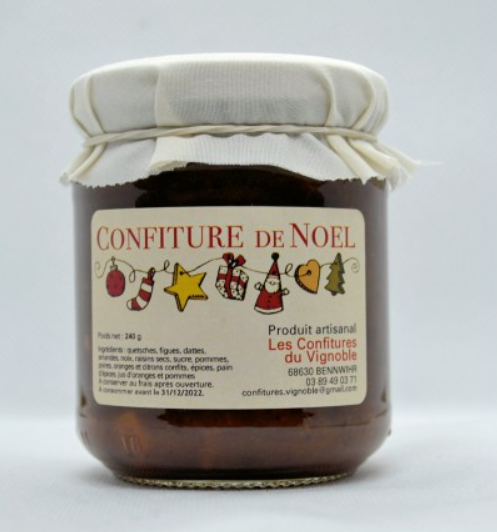 Cette confiture artisanale réunit le meilleur des fruits d'hiver et des épices de Noël dans une recette généreuse et parfumée. Préparée à Bennwihr, en Alsace, elle incarne l'esprit chaleureux des fêtes de fin d'année.