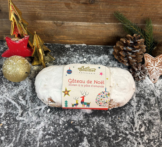 Un grand classique de Noël revisité : une pâte moelleuse finement nappée de pâte d’amande, généreusement garnie de raisins secs et d’écorces d’orange, pour une douceur riche et festive. Parfait à partager autour d’un café ou d’un thé, ou à offrir pour faire plaisir.