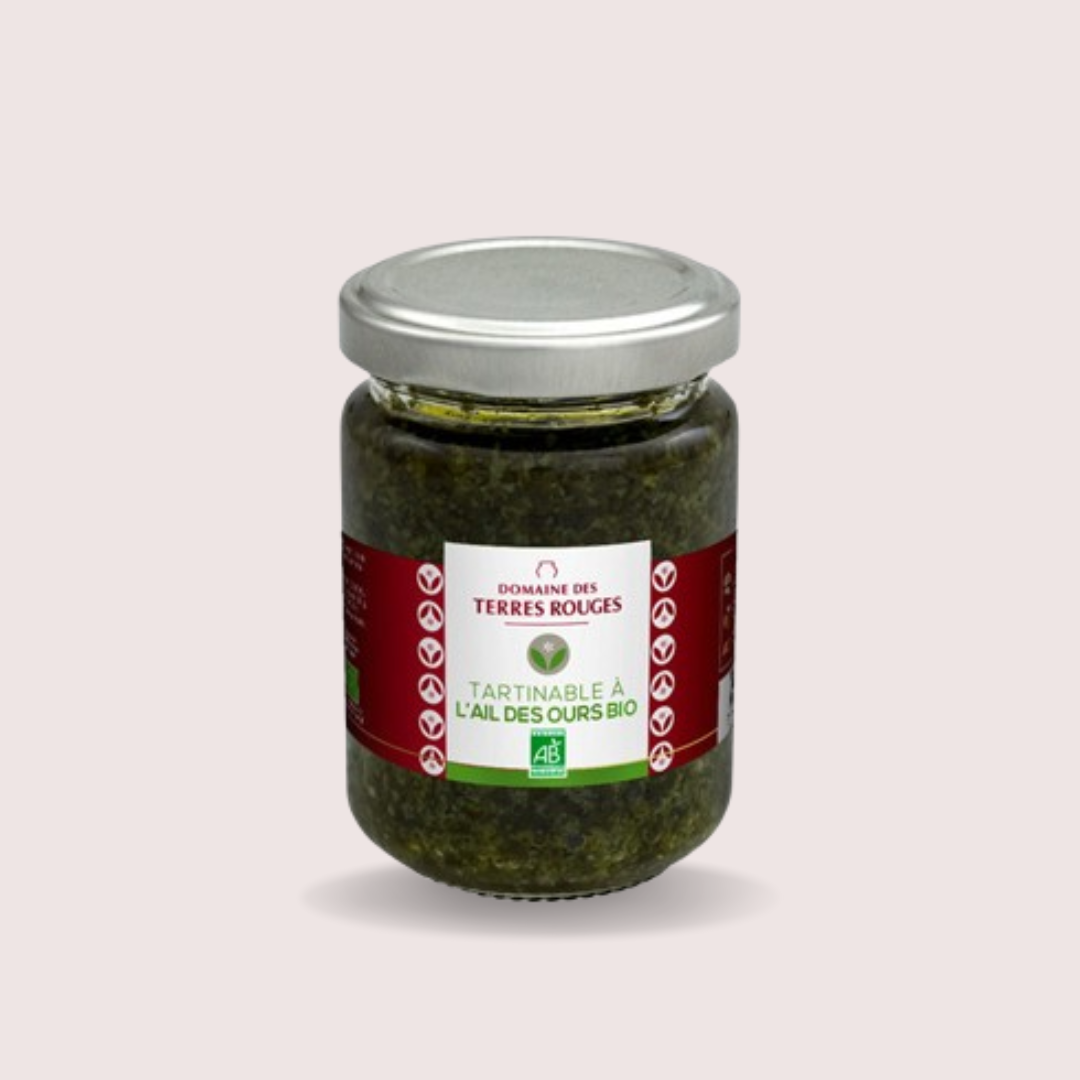 Un tartinable fraichement cueilli en forêt. Laissez-vous surprendre par son goût frais et puissant ! Ce tartinable à l'ail des ours bio du Domaine des Terres Rouges sera délicieux sur vos pâtes fraiches, en tartines à l'apéritif, à mélanger avec une poêlée de légumes ou en accompagnement