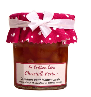 Cette délicate confiture de cerises blanches et pétales de roses a été inventée par Christine Ferber, et nommée Confiture pour Mademoiselle. La note finale de rose apporte fraîcheur et douceur à cette confiture à la recette originale.