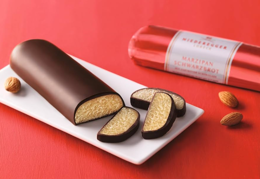 Découvrez le célèbre marzipan allemand de la maison Niederegger : une pâte d’amande onctueuse, riche en amandes, recouverte d’un fin enrobage de chocolat noir. Ce format “pain noir” emblématique allie douceur et intensité pour une pause gourmande équilibrée.