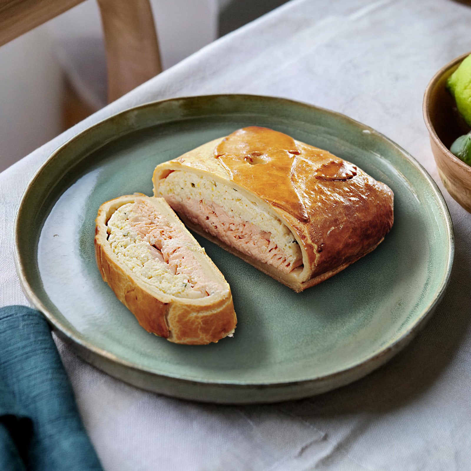 Le Cœur de filet de saumon en croûte est un plat en croûte savoureux avec son cœur de filet de saumon enrobé de pâte feuilletée pur beurre, pour un plat élégant et savoureux !