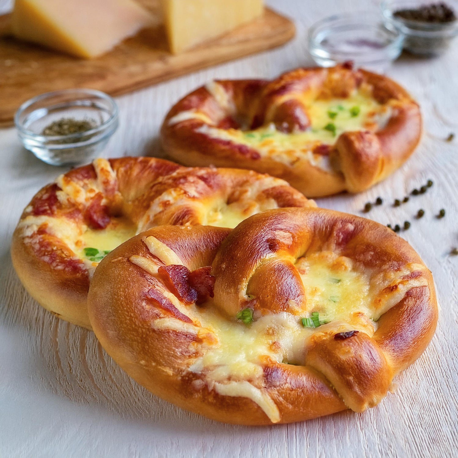 Le "bretzel gratiné au fromage et lardons" est un bretzel (petit pain brioché typiquement alsacien) gratiné à la barkass (fromage originaire des Vosges) avec des lardons.