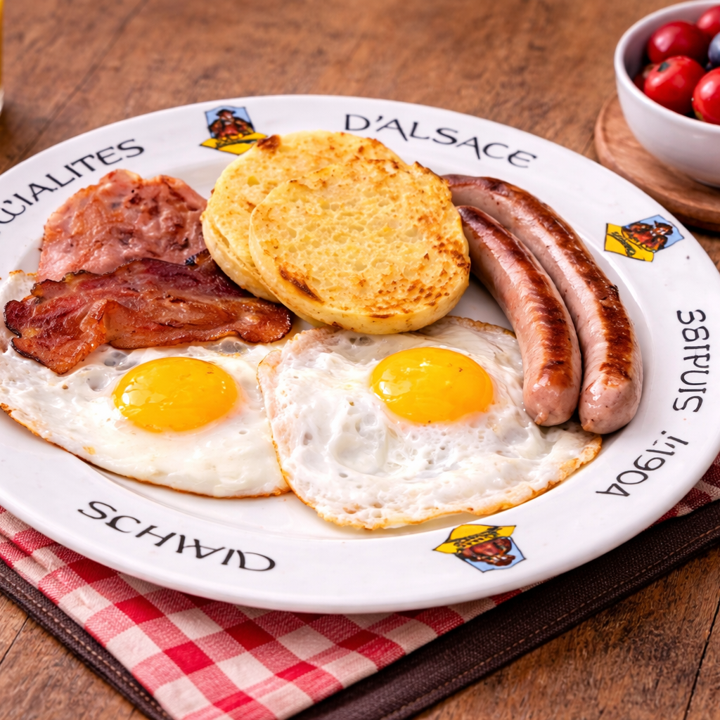 Notre brunch met à l’honneur des spécialités alsaciennes revisitées : assiettes salées généreuses, douceurs maison, fruits frais et produits soigneusement sélectionnés.