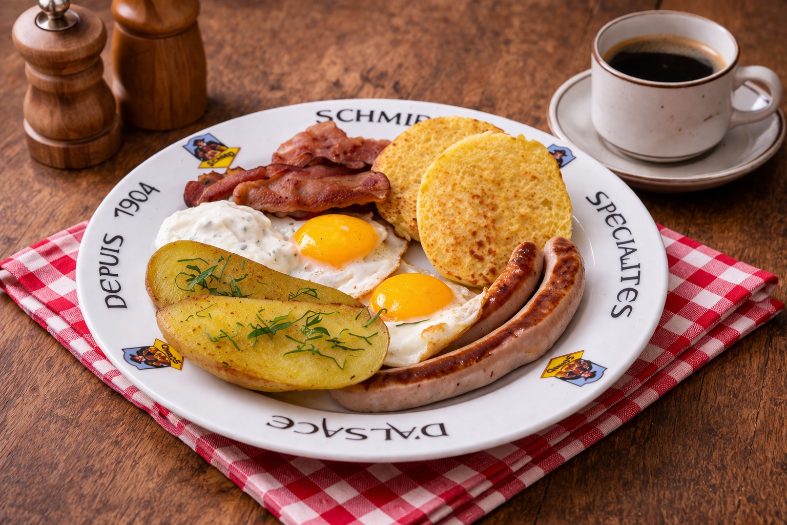 La poitrine fumée grillée révèle toute son intensité, tandis que les saucisses de Nuremberg, fines et savoureuses, apportent une touche subtilement épicée.