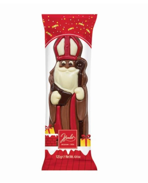 Laissez-vous tenter par notre Saint-Nicolas en chocolat belge : une figurine creuse de 125 g, délicieusement fondante et finement moulée. Parfaite pour offrir ou croquer, elle apporte instantanément la magie des fêtes à chaque bouchée.