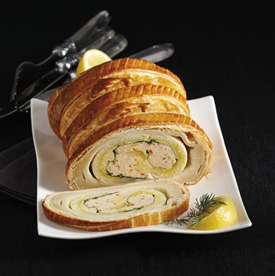 Un feuilleté gourmand alliant la délicatesse de la sole et des langoustines à une sauce au safran parfumée.