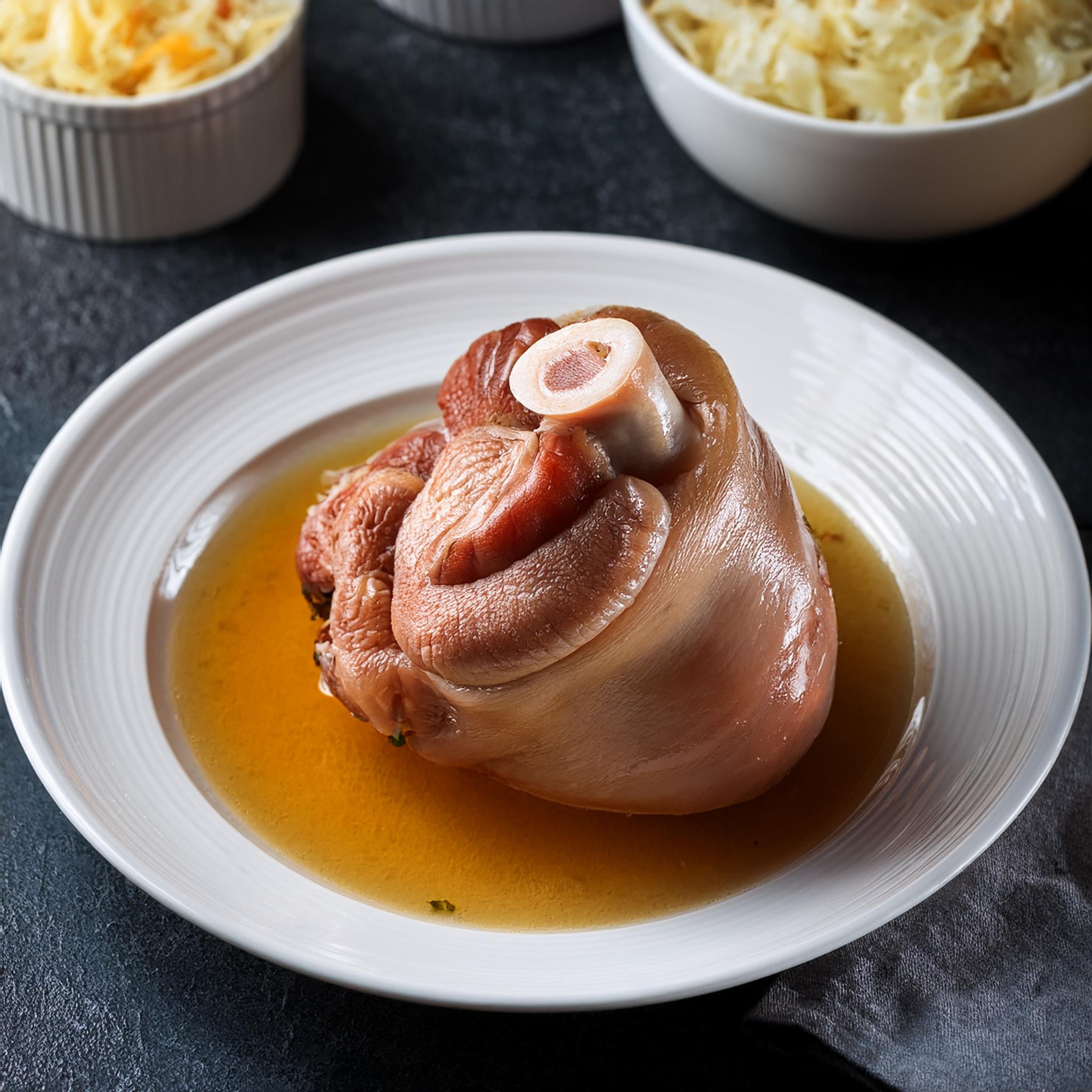 Le jarret de porc est la partie des pattes soit, entre l’épaule et le pied (la patte antérieure). Il est appelé aussi le jambonneau et possède un os central et il est toujours recouvert d’une couenne plutôt épaisse. Sa chair est ferme, légèrement gélatineuse et savoureuse. Saumuré puis blanchi, le jarret de porc 1/2 sel cuit est prêt à être réchauffé.