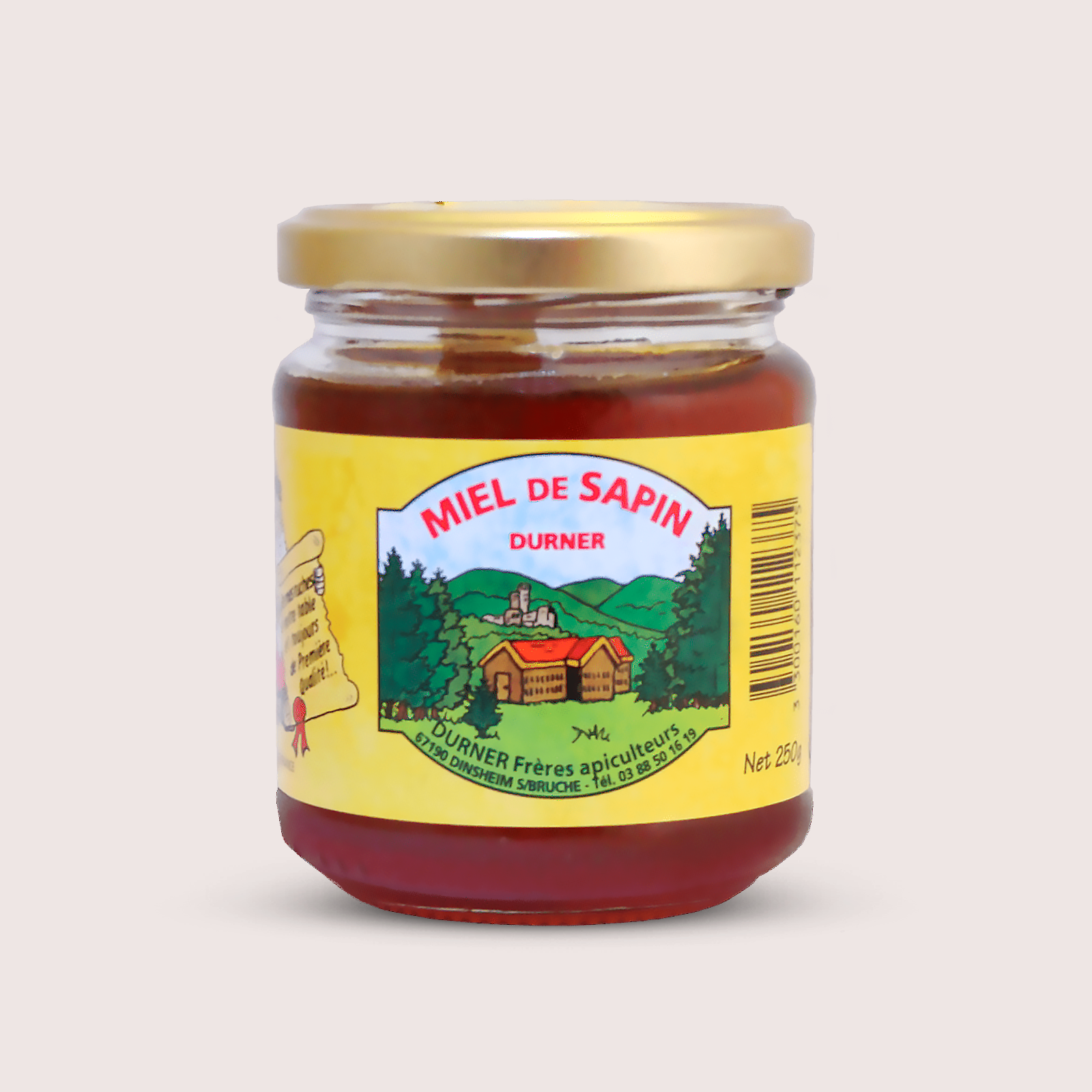 Excellent miel de Sapin, exclusivement réalisé en Alsace, dans le massif des Vosges et le Piémont des Vosges.