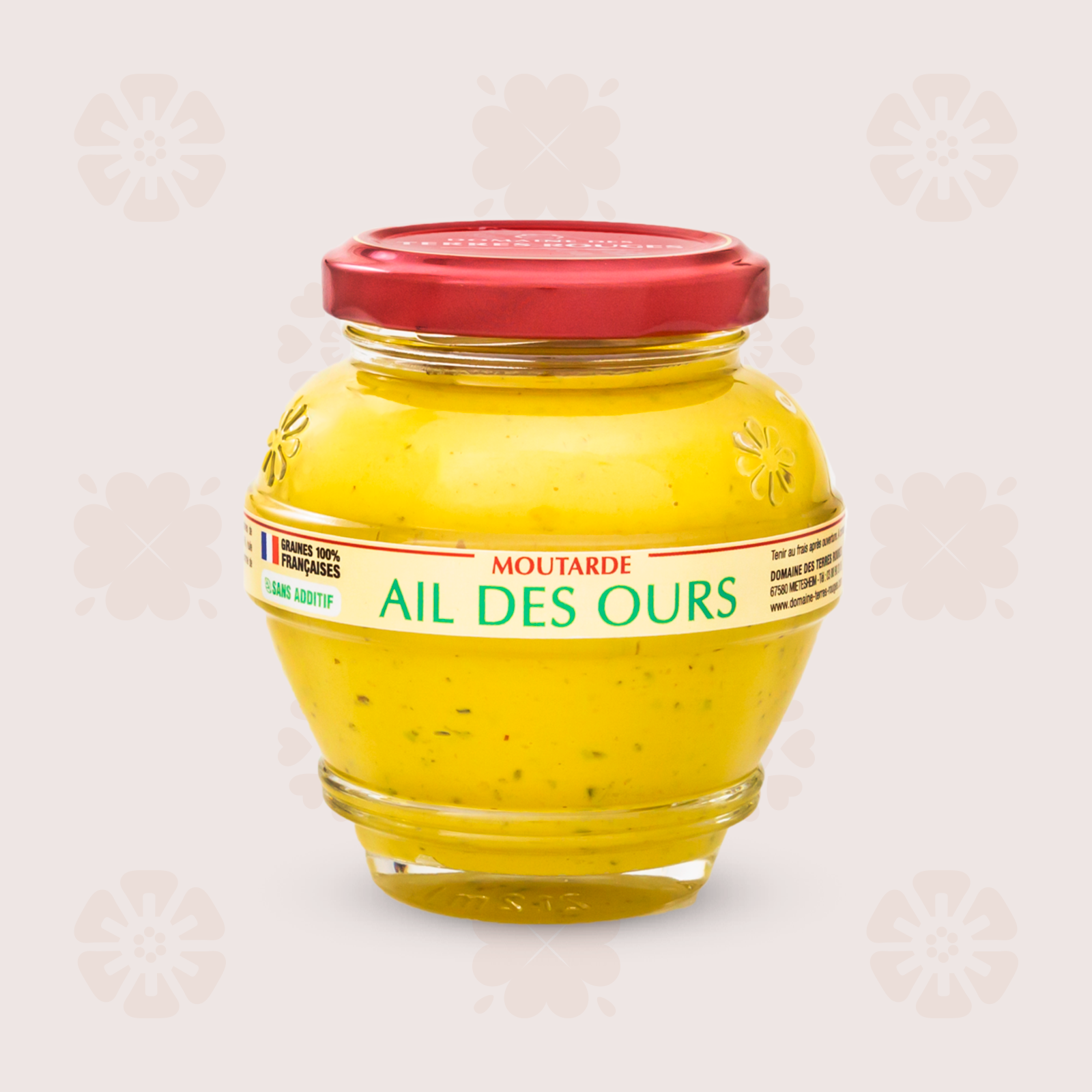 La moutarde à l'Ail des Ours du Domaine des Terres Rouges, est issue de graines cultivées exclusivement par des agriculteurs français, qui sont ensuite travaillées et moulues traditionnellement à la meule de pierre.
