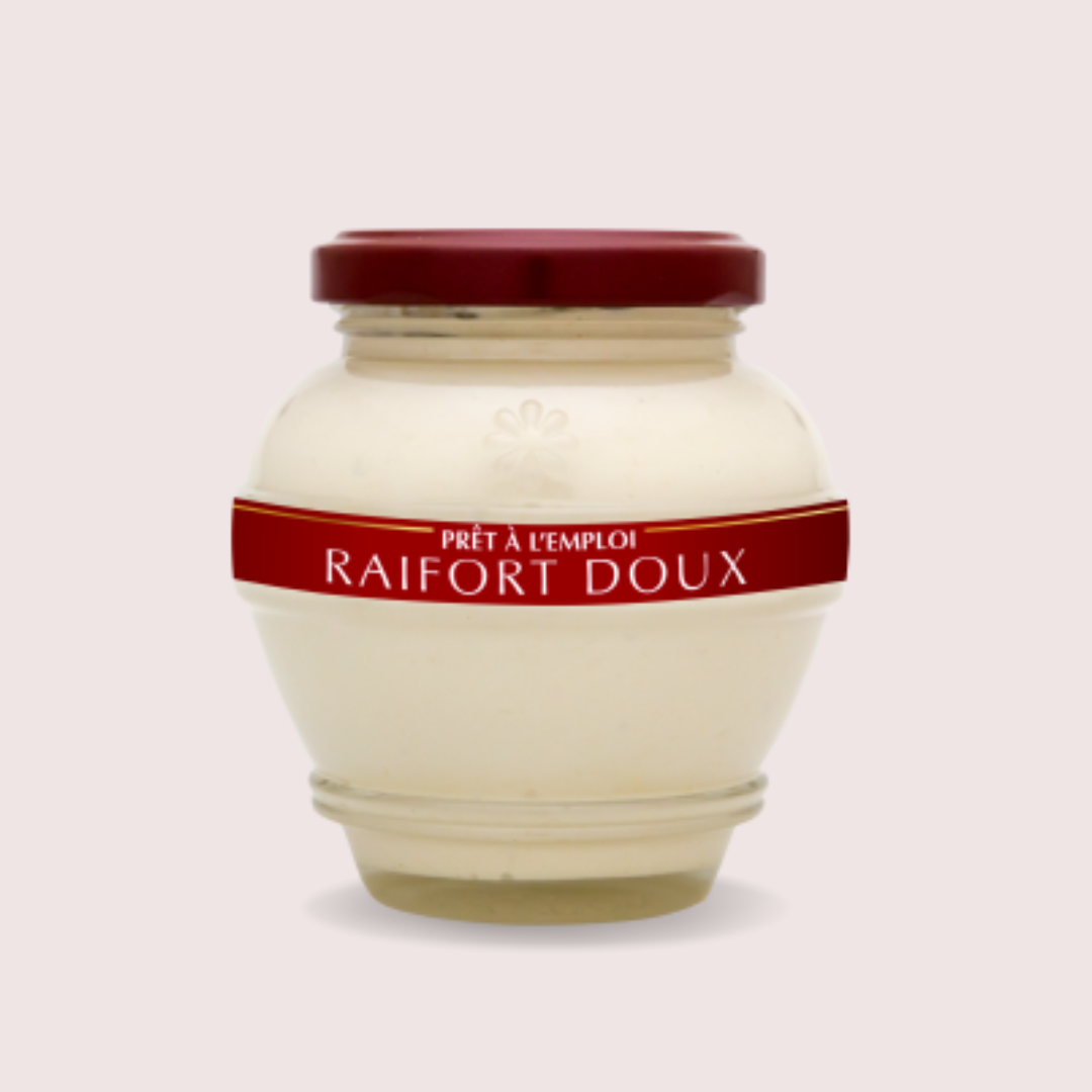 Le raifort doux est un condiment naturel, fabriqué à partir des racines d’une plante aromatique cultivée en Alsace. Le raifort pique la curiosité par ses notes à la fois fraîches et poivrées. Il relèvera la viande, les légumes ou le poisson, en sauce ou en bord d’assiette.