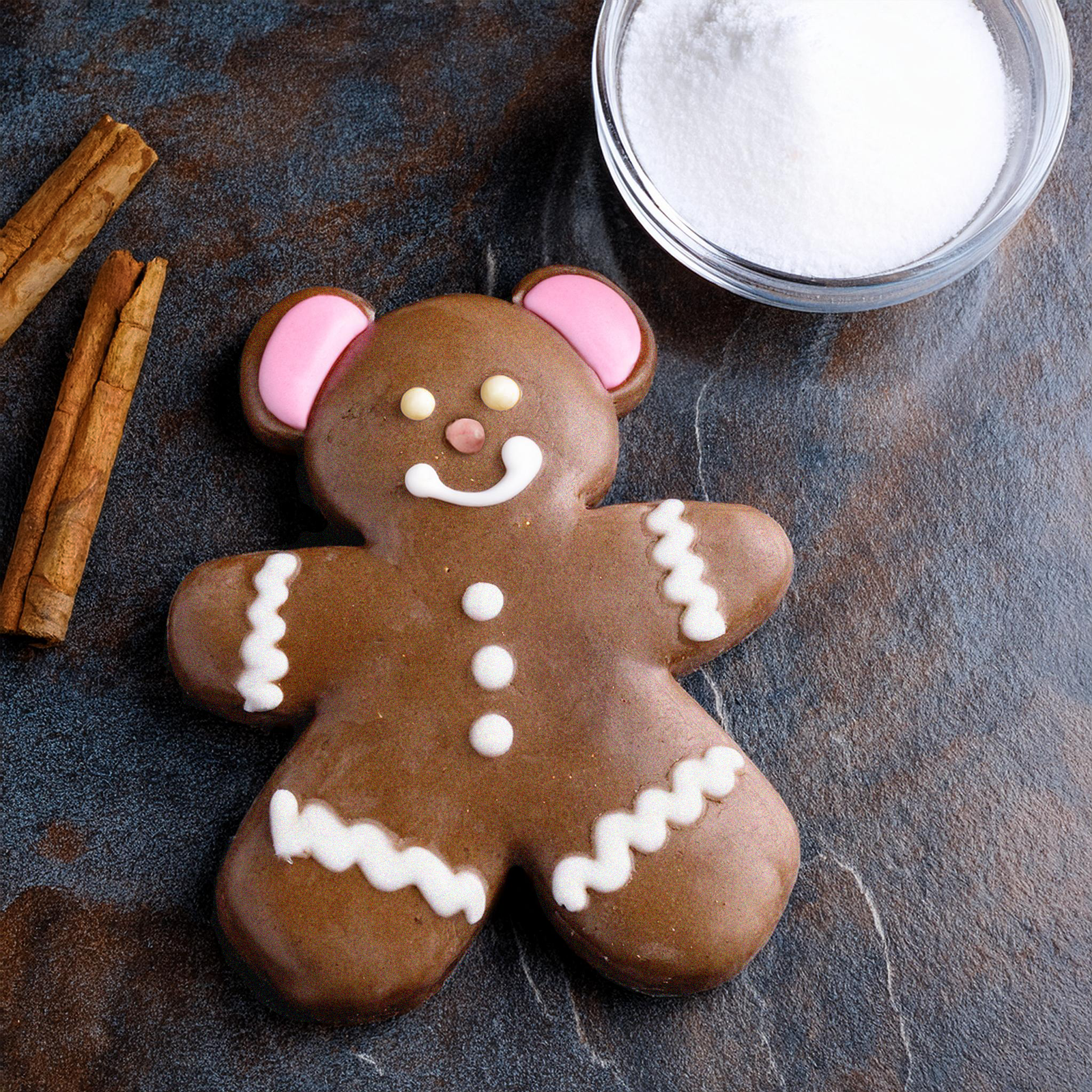Petit Ourson en pain d'épices artisanal de Gertwiller. Décoration au sucre ( glace royale ) à la main à l'aide de poches à douille.